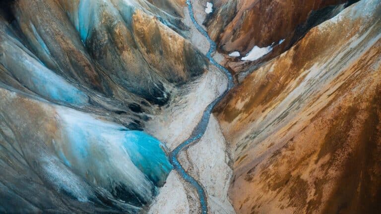 Bij Landmannlaugar kun je wandelen over en langs roestbruine, groene, gele en zelfs blauwige rhyolietbergen. Het landschap is kaal en toch zeer afwisselend, met plukken sneeuw op de heuvels, rookpluimen van warme bronnen en formaties van zwart vulkanisch glas. Loop langs de meanderende rivier, door een lavaveld en naar de top van bijvoorbeeld de Bláhnukur met uitzicht over het omringend gebied. Wie wil kan het bezoek aan Landmannalaugar afsluiten met een bad in de warme beek. Je vervolgt de reis naar de zuidkust van IJsland.